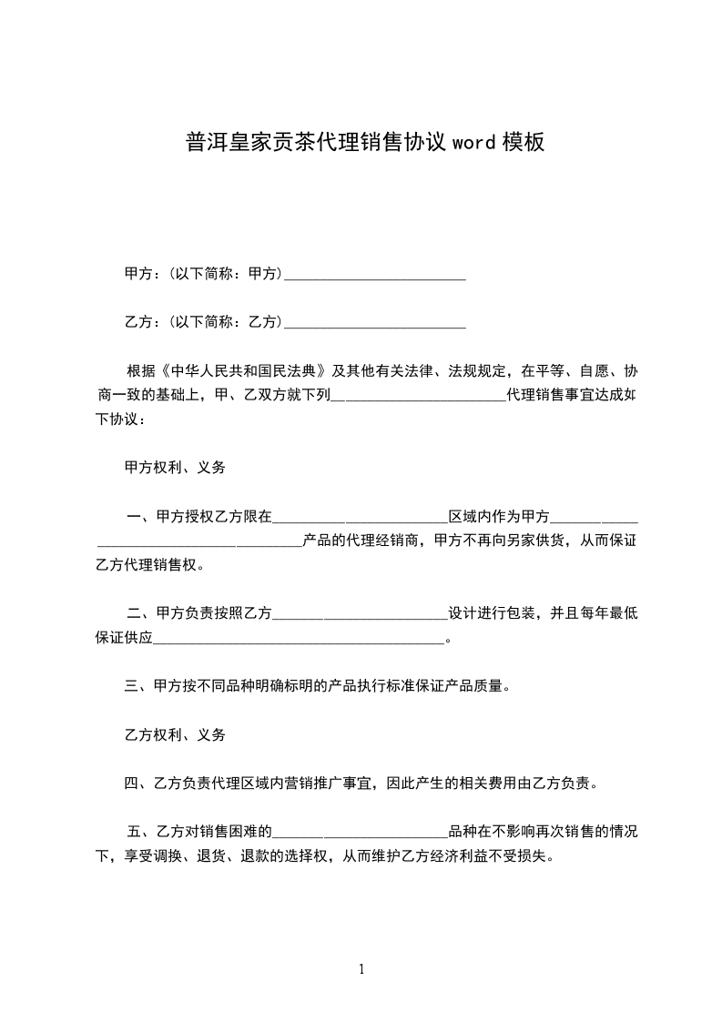 1、甲方授权乙方作为_________年度甲方产品_________在_________地区的授权经销商。