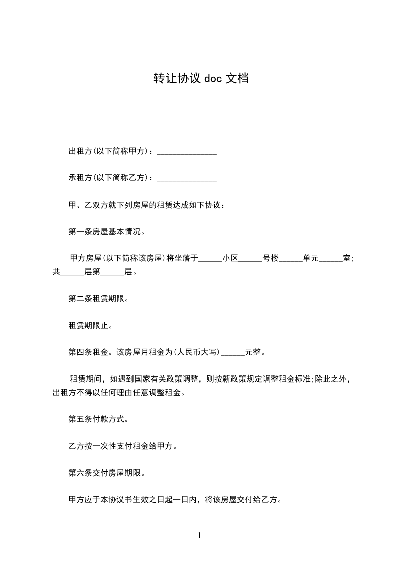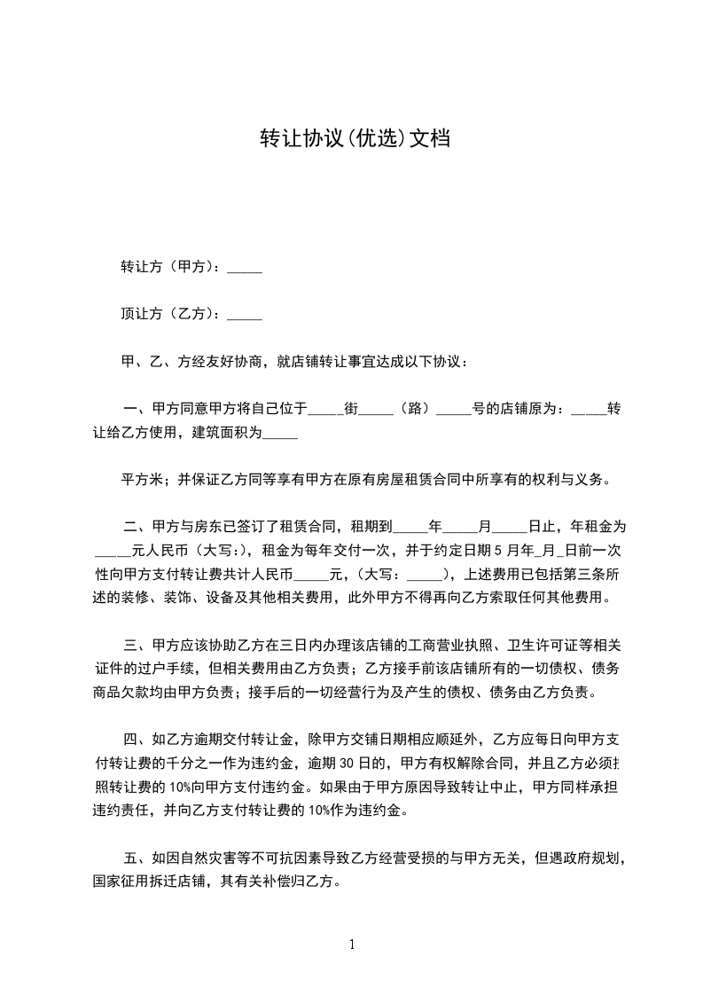 转让方:_________________(下称“甲方”)地址:_________________