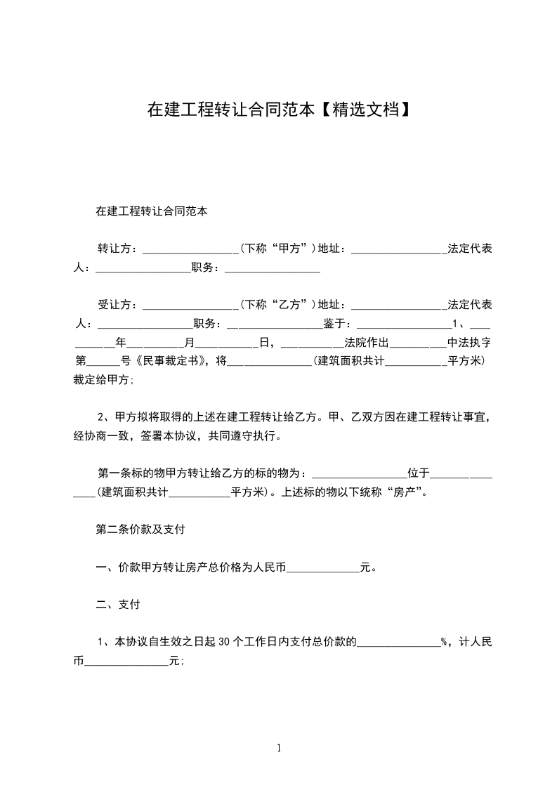 甲、乙双方因在建工程转让事宜,经协商一致,签署本协议,共同遵守执行。