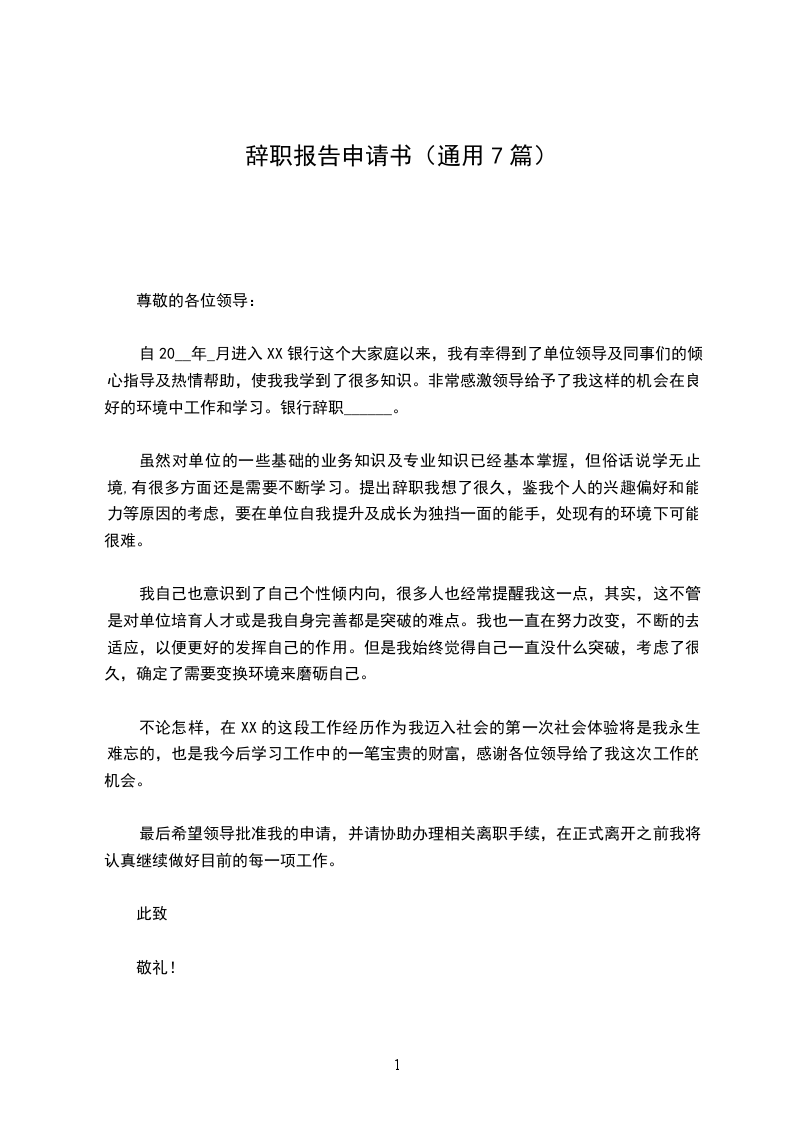 本人带着复杂的心情写下此封辞职申请。因为您对自己的能力的信任,让自己能够有加入__银行工作的机会,同时在短短的一年之间就得到了很多很多出外学习的机会。尽管自己仅仅就是柜员,然而经过这一年时间在__银行的工作,还是使得自己学会了非常多的知识、积累了一定的工作经验。对此本人深深的表示感激!