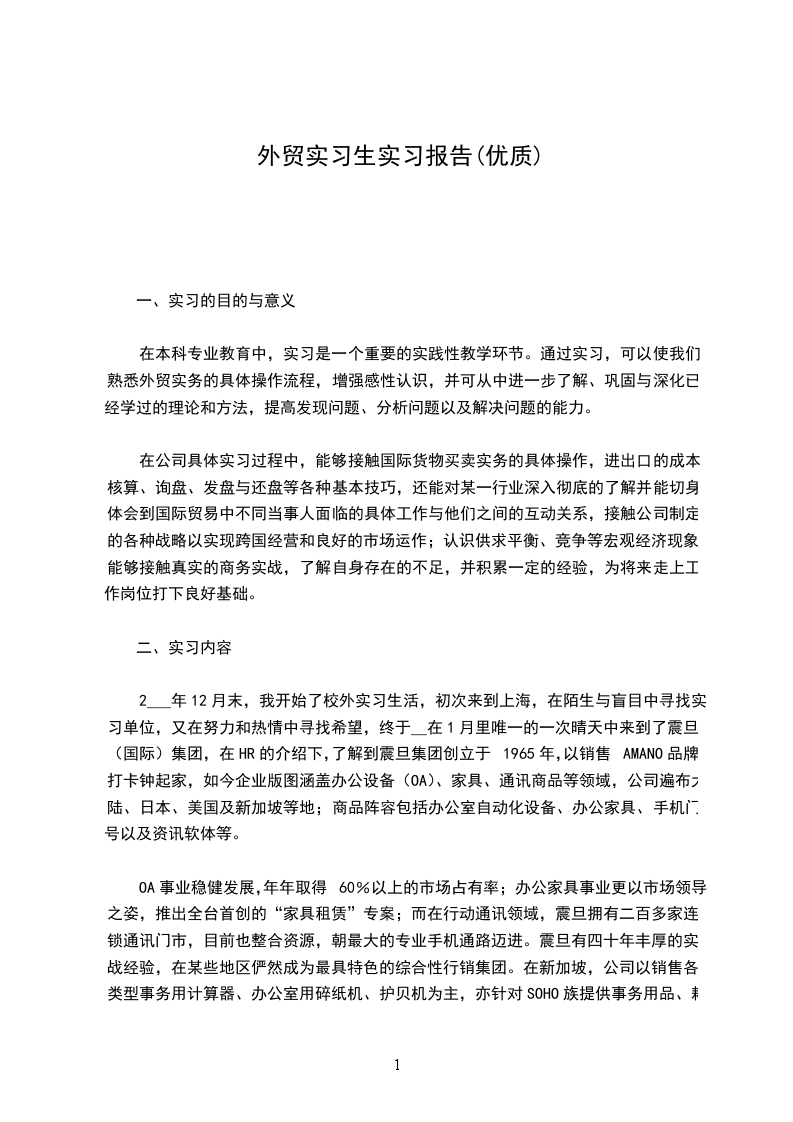 20__年暑假,正式开始了我梦寐以求的见习生活。在老师的引荐下,我来到了青岛______公司见习。这是一家专门出口针织品的外贸公司,成立于20__年,由最初简单的'针织服装发展到此刻的浴巾、毛巾、婴儿爬服、内衣等多种产品为一体的产品模式,客户也由最初的单一客户发展成此刻遍布法国、日本、克罗地亚、意大利等欧、亚国家的客户规模。公司成立时间虽然很短,但不论是从产品生产的规模还是从客户数量上来看,公司都有着突飞猛进的进步。我虽然来公司的时间不长,但是在公司领导的领导下和同事的感染下,自己对工作都始终抱着极大的热情,深深的体会到自己职责的重大。在自己用心投入工作的过程中,不管是为人处事方面,还是工作方面,自己都是受益匪浅!