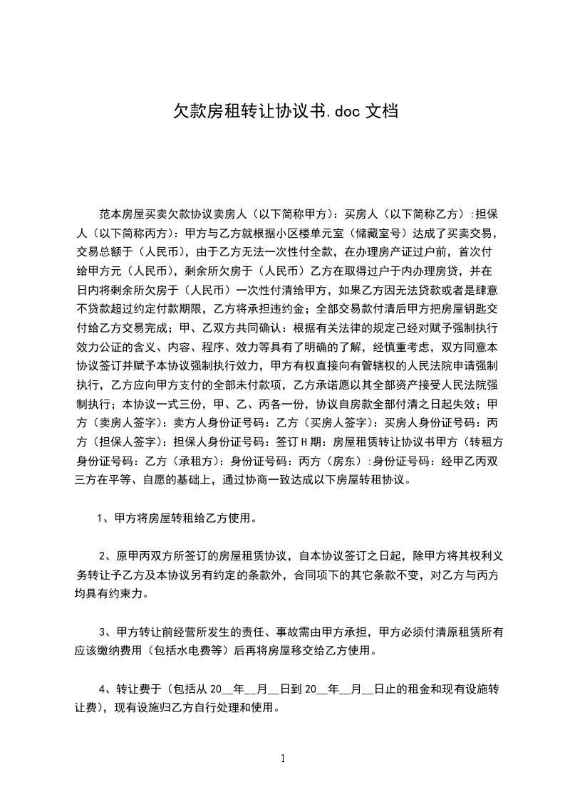 欠款转让协议书3