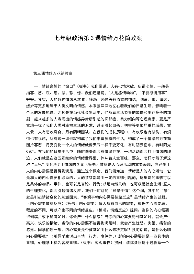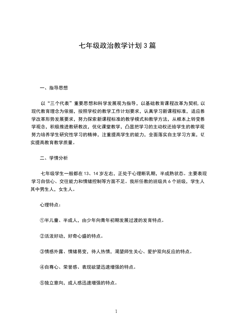七年级政治教学计划篇3