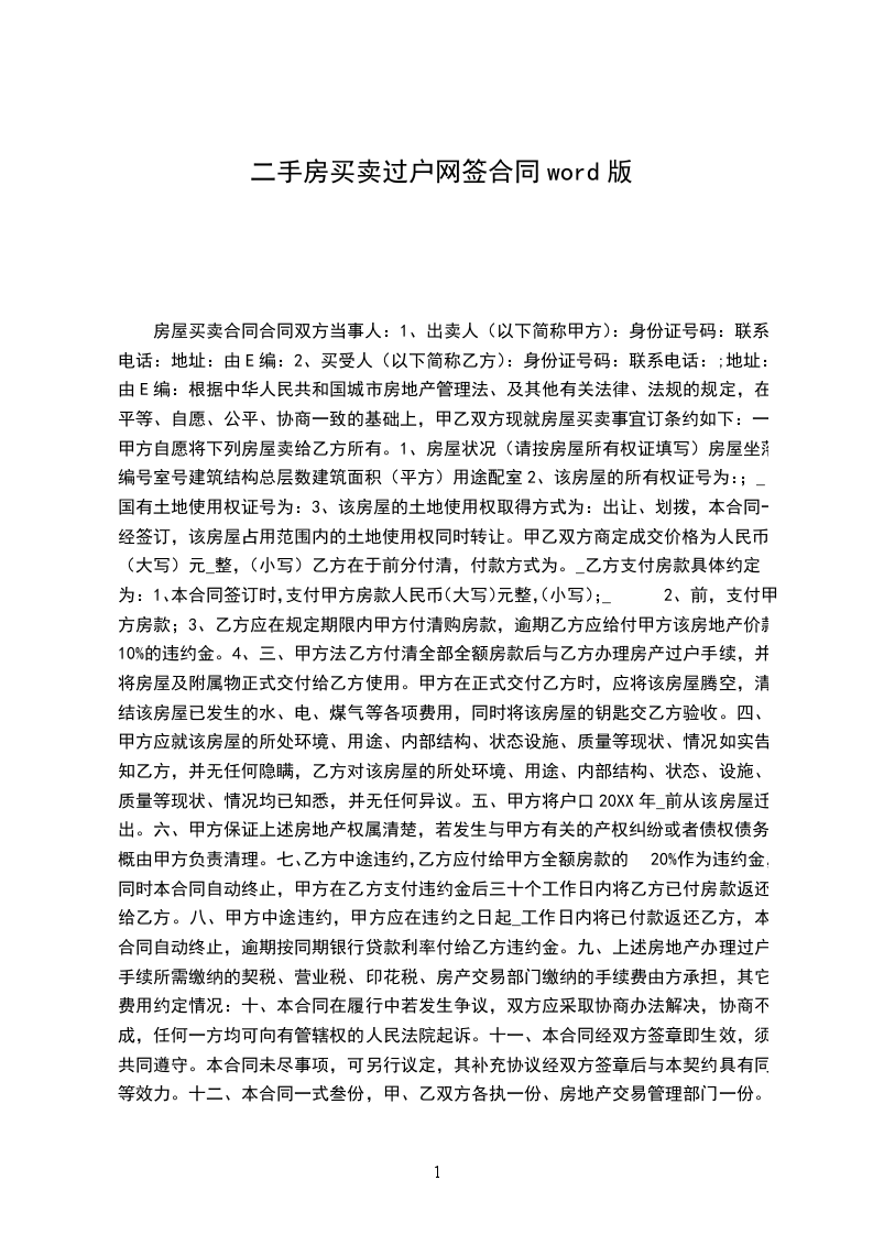 1、出卖人(以下简称甲方):身份证号码:联系电话:地址:由E编: