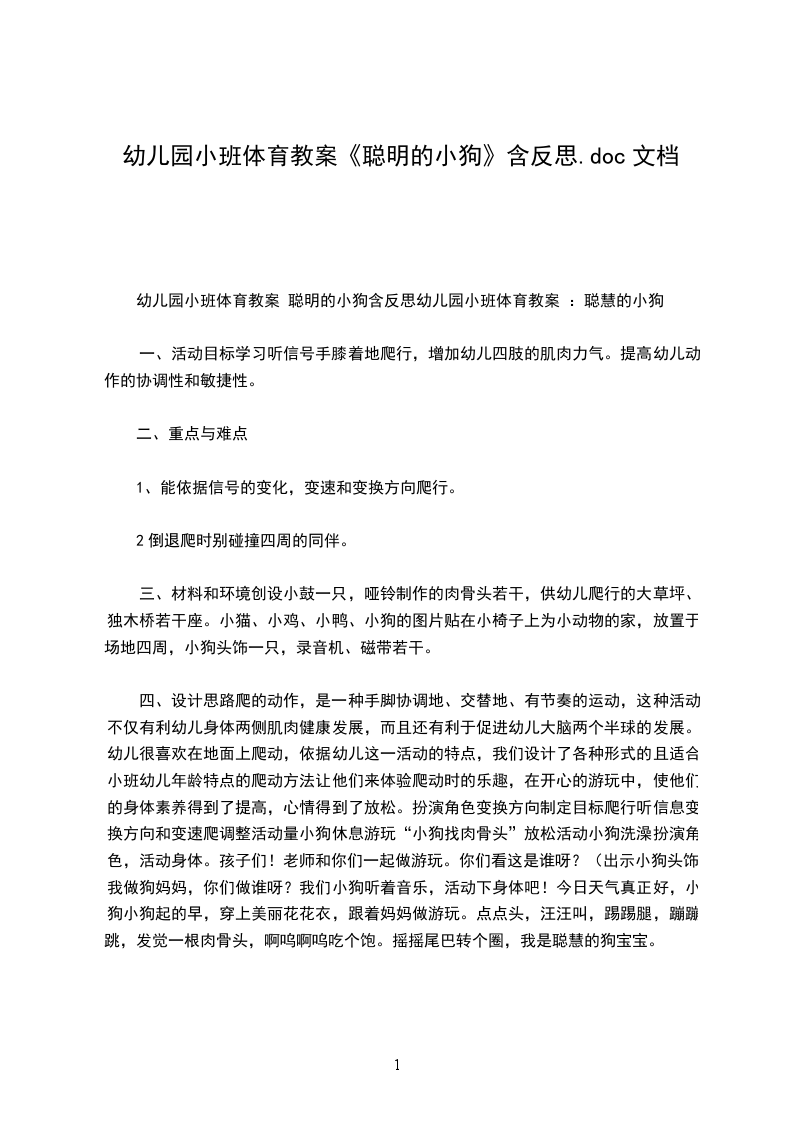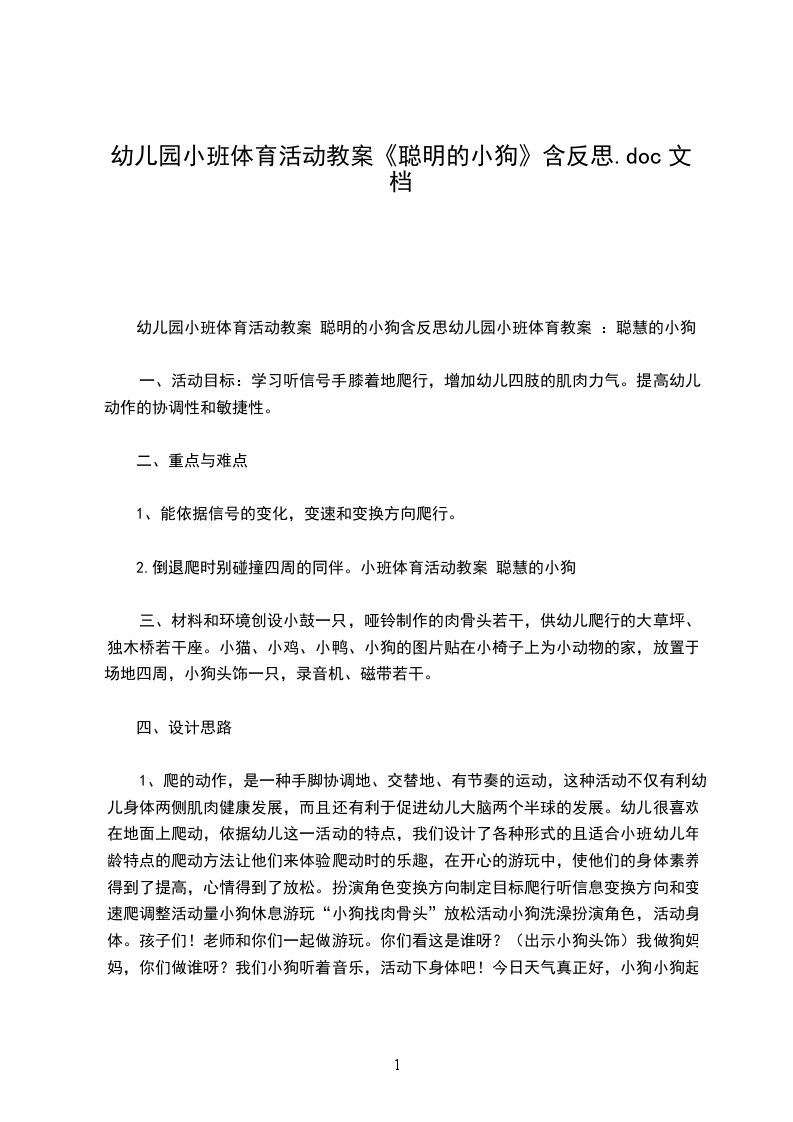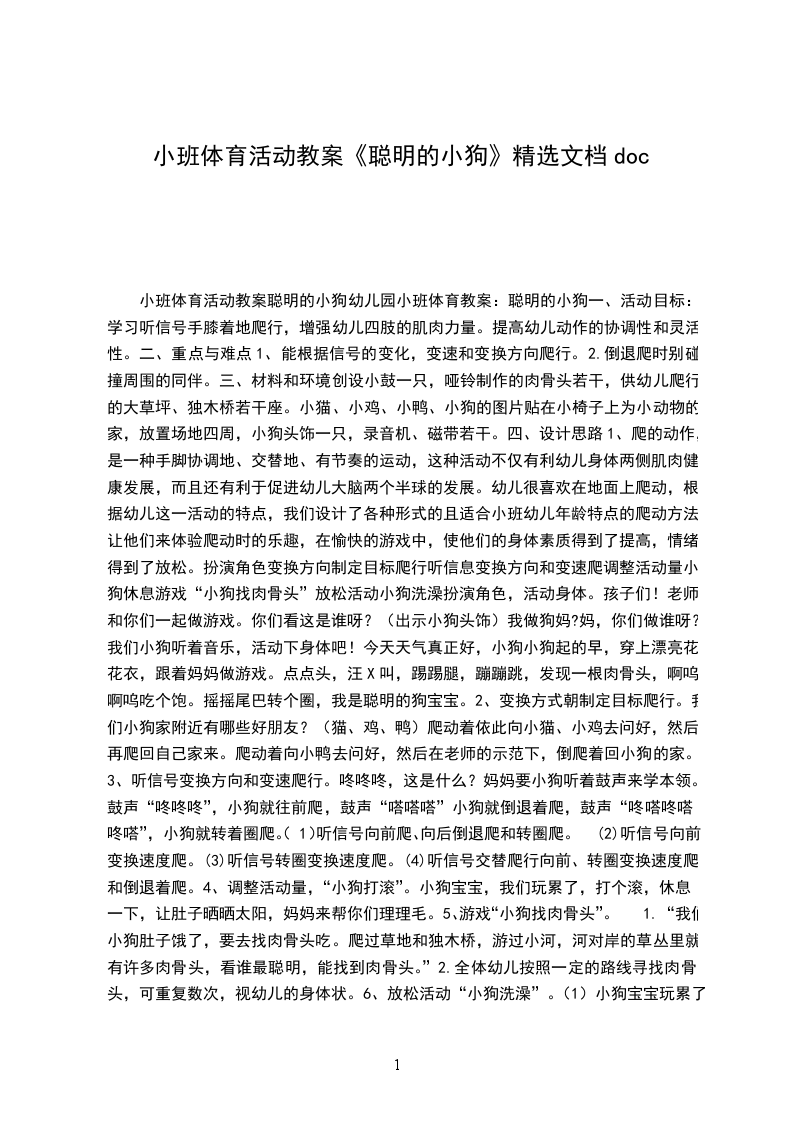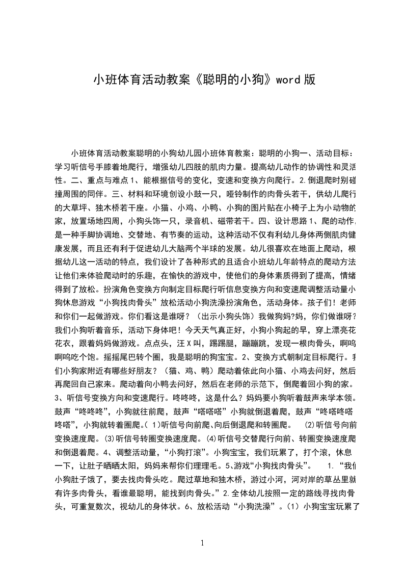 幼儿园小班体育优秀教案聪明的小狗设计思路:爬的动作,是一种手脚协调地、交替地、有节奏的运动,这种活动不仅有利幼儿身体两侧肌肉健康发展,而且还有利于促进幼儿大脑两个半球的发展。幼儿很喜欢在地面上爬动,根据幼儿这一活动的特点,我们设计了各种形式的且适合小班幼儿年龄特点的爬动方法让他们来体验爬动时的乐趣,在愉快的游戏中,使他们的身体素质得到了提高,情绪得到了放松。扮演角色变换方向制定目标爬行听信息变换方向和变速爬调整活动量小狗休息游戏"小狗找肉骨头"放松活动小狗洗澡。活动目标: