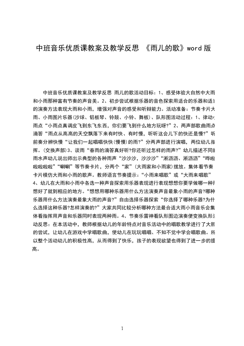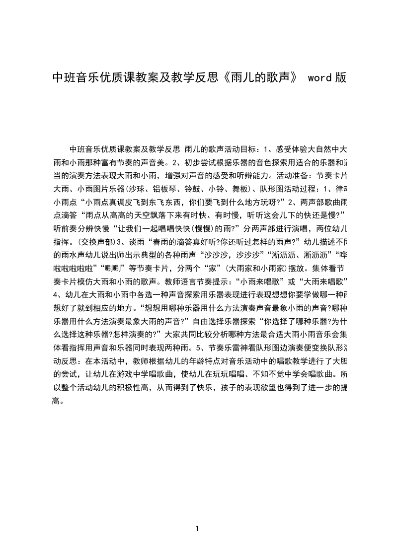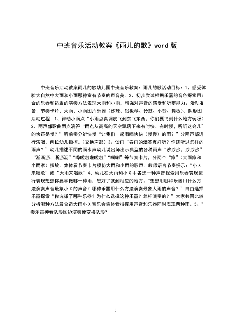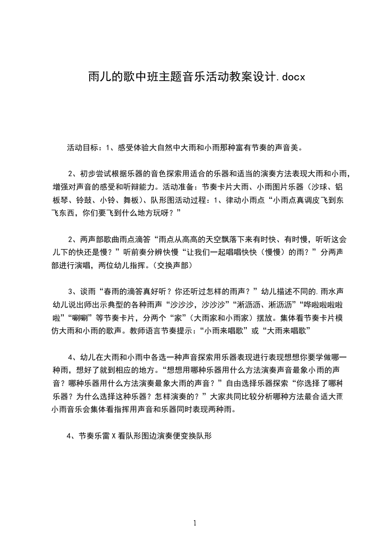 中班音乐活动教案雨儿的歌幼儿园中班音乐教案:雨儿的歌活动目标: