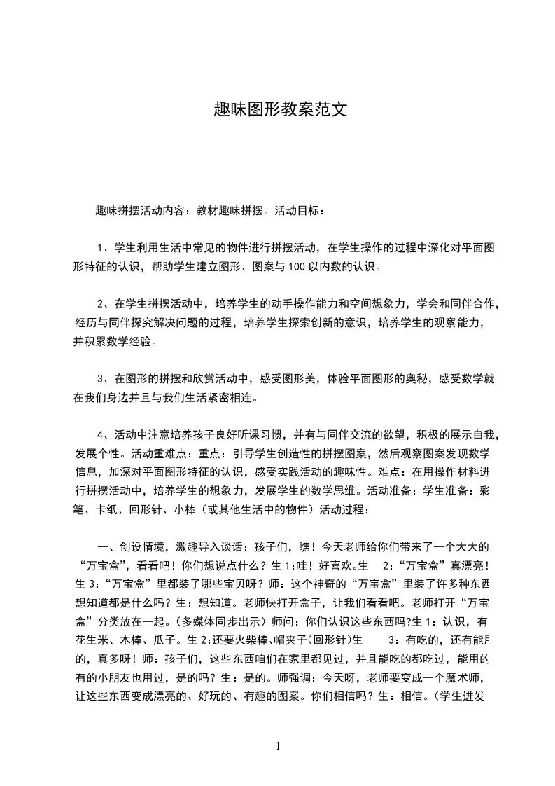 三、培养幼儿思维的灵活性,发展幼儿动手能力,激发幼儿学习数学的欲望。学会了各种图形的特征。