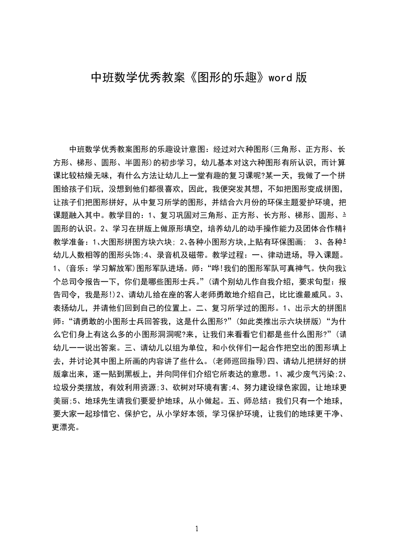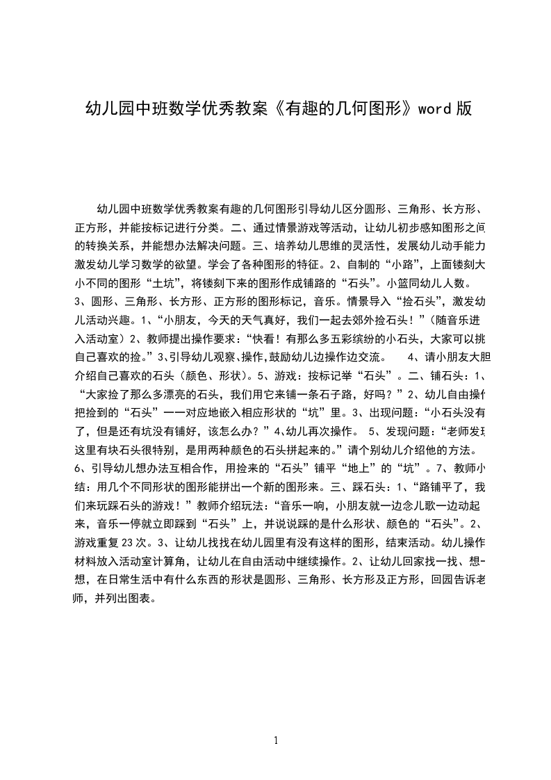 幼儿园中班数学优秀教案有趣的几何图形引导幼儿区分圆形、三角形、长方形、正方形,并能按标记进行分类。