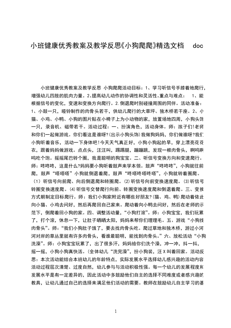 小班健康优秀教案及教学反思 小狗爬爬活动目标: