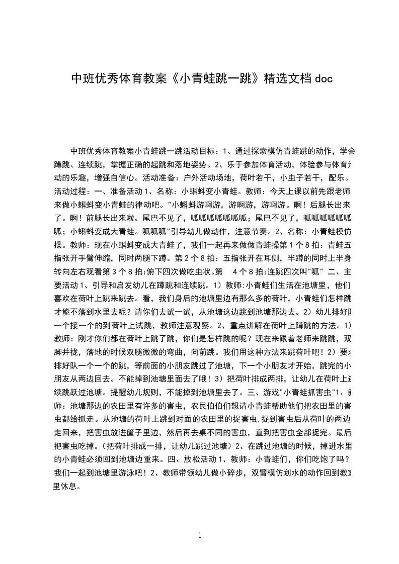 中班优秀体育教案小青蛙跳一跳活动目标: