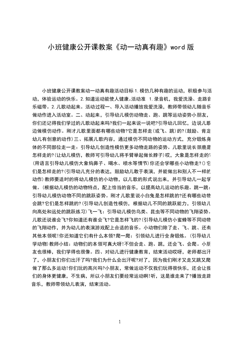 二、动起来,引导幼儿模仿动物走、跑、跳等运动姿势小朋友,你们还记得我们学过的儿歌动起来吗?我们一起来说一说吧?引导幼儿回忆,边说儿歌边做模仿动作。刚才儿歌里面都有哪些动物?它是怎样走(或飞、跳)的?(鼓励、肯定幼儿有创意的动作)
