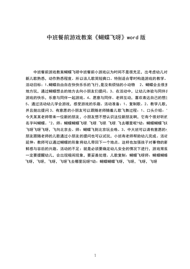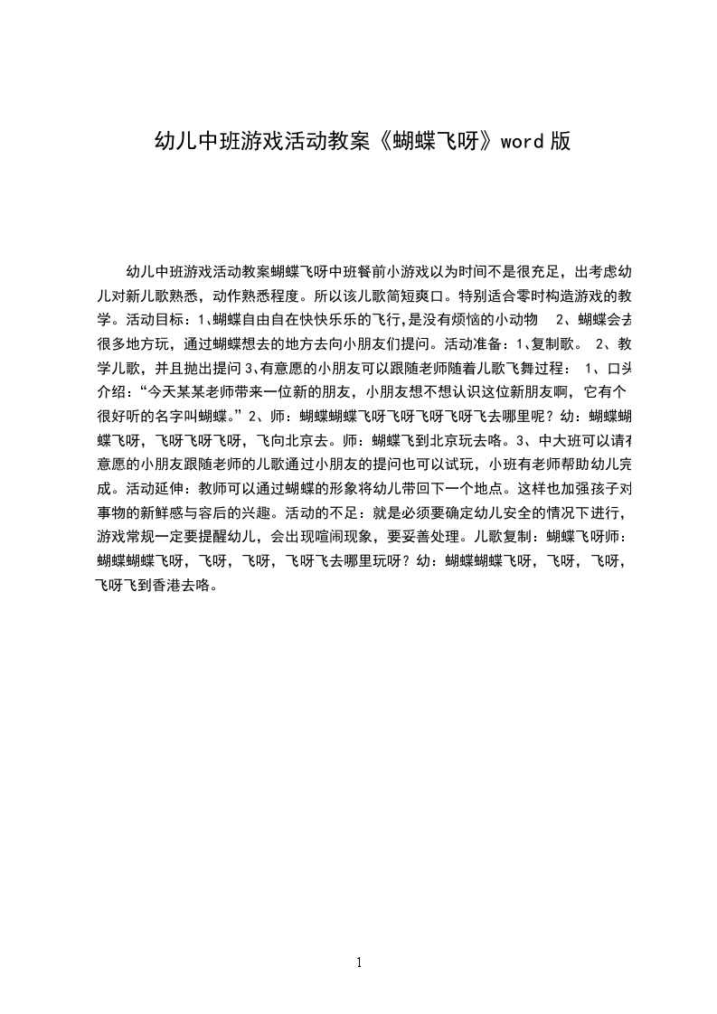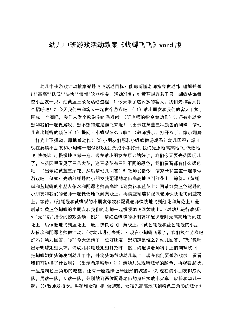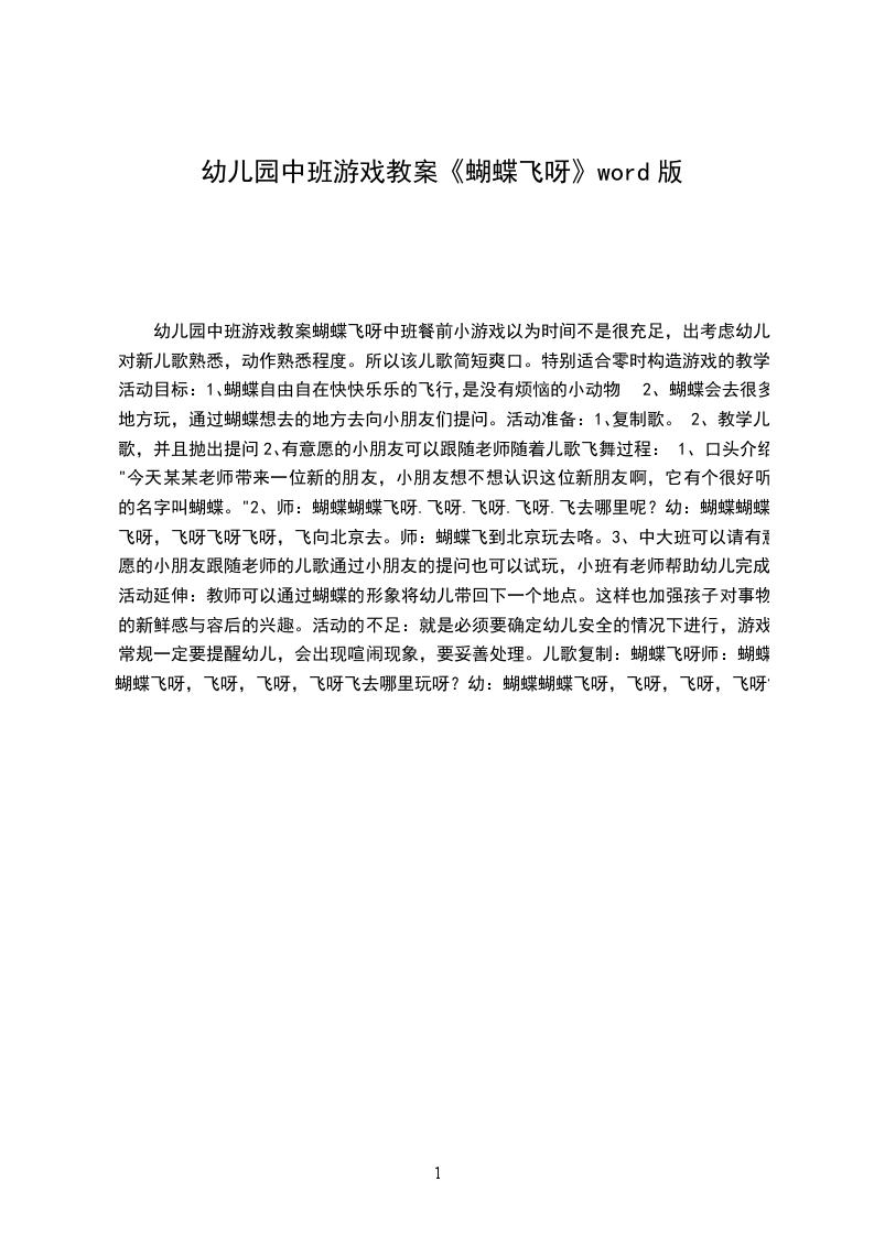 中班游戏课教案过山车、让蝴蝶飞起来等游戏目标: