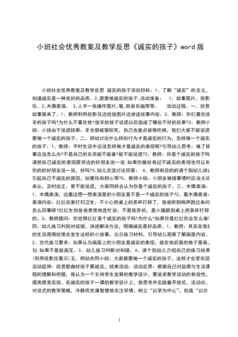 小班社会优秀教案及教学反思 诚实的孩子活动目标: