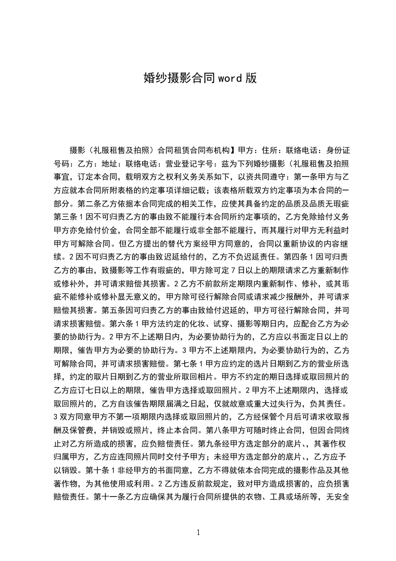 摄影(礼服租售及拍照)合同租赁合同布机构】甲方:住所:联络电话:身份证号码:乙方:地址:联络电话:营业登记字号:兹为下列婚纱摄影(礼服租售及拍照)事宜,订定本合同,载明双方之权利义务关系如下,以资共同遵守: