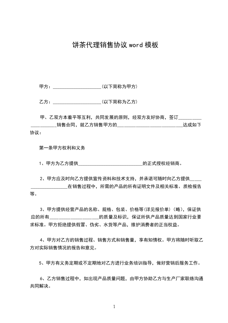 绿茶佛饼代理销售协议word模板