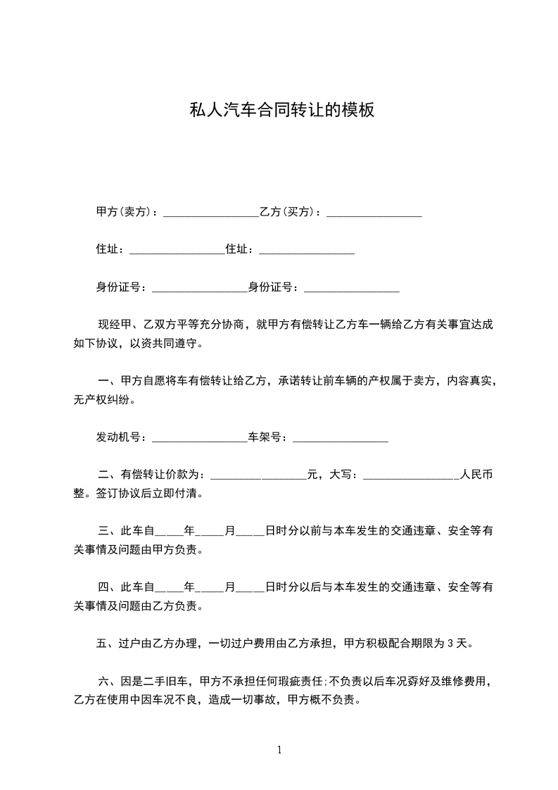 现经甲、乙双方平等充分协商,就甲方有偿转让乙方车一辆给乙方有关事宜达成如下协议,以资共同遵守。