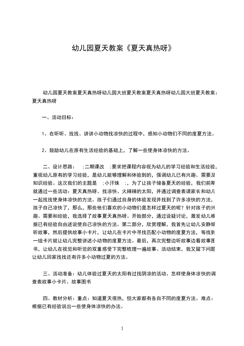 (2)了解夏天的特征,萌发幼儿对大自然的热爱之情。