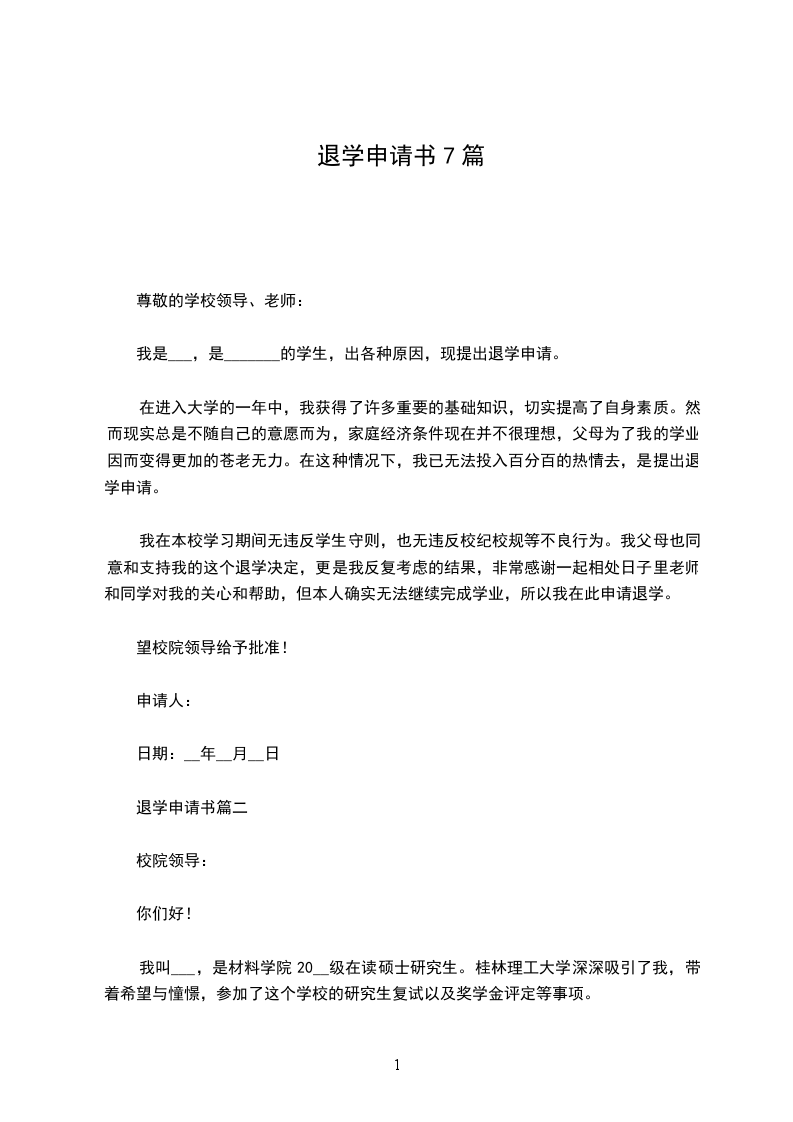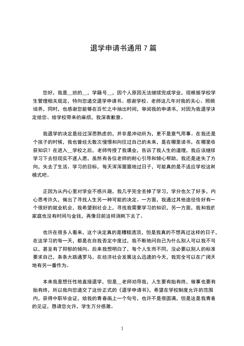 您好,我是__班的__,学籍号__,因个人原因无法继续完成学业,现根据学校学生管理相关规定,特向您递交退学申请书。感谢学校、老师这几年对我的关心、照顾、培养,同时,也感谢您能够在百忙之中抽出时间,审阅我的申请书,对因为我退学决定给您、给学校带来的麻烦,我深表歉意。