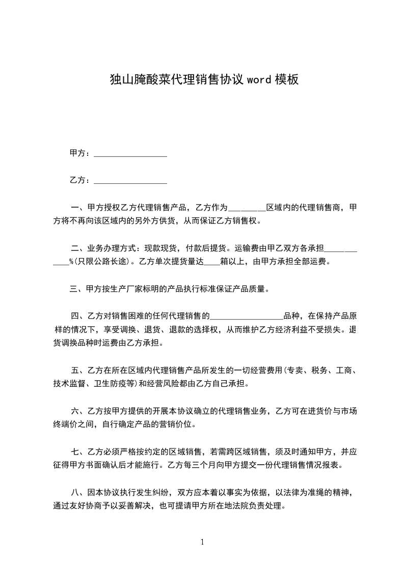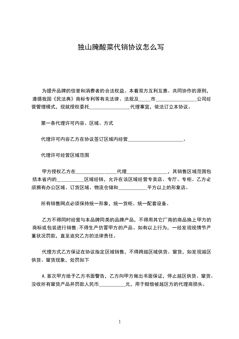 1.甲方授权乙方在规定的销售区域经销_________________品牌专卖、专厅、专柜的产品。