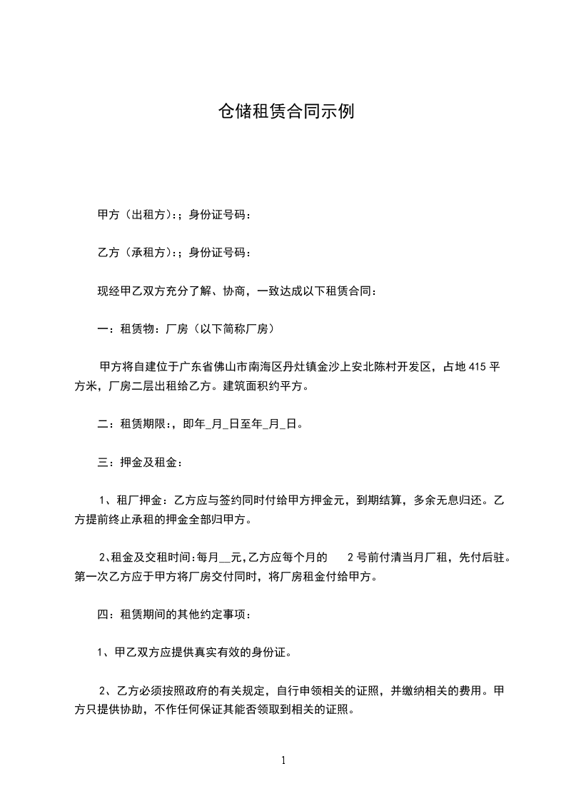 甲、乙双方在法律的基础上,经过友好协商达成以下仓库租赁合同范本: