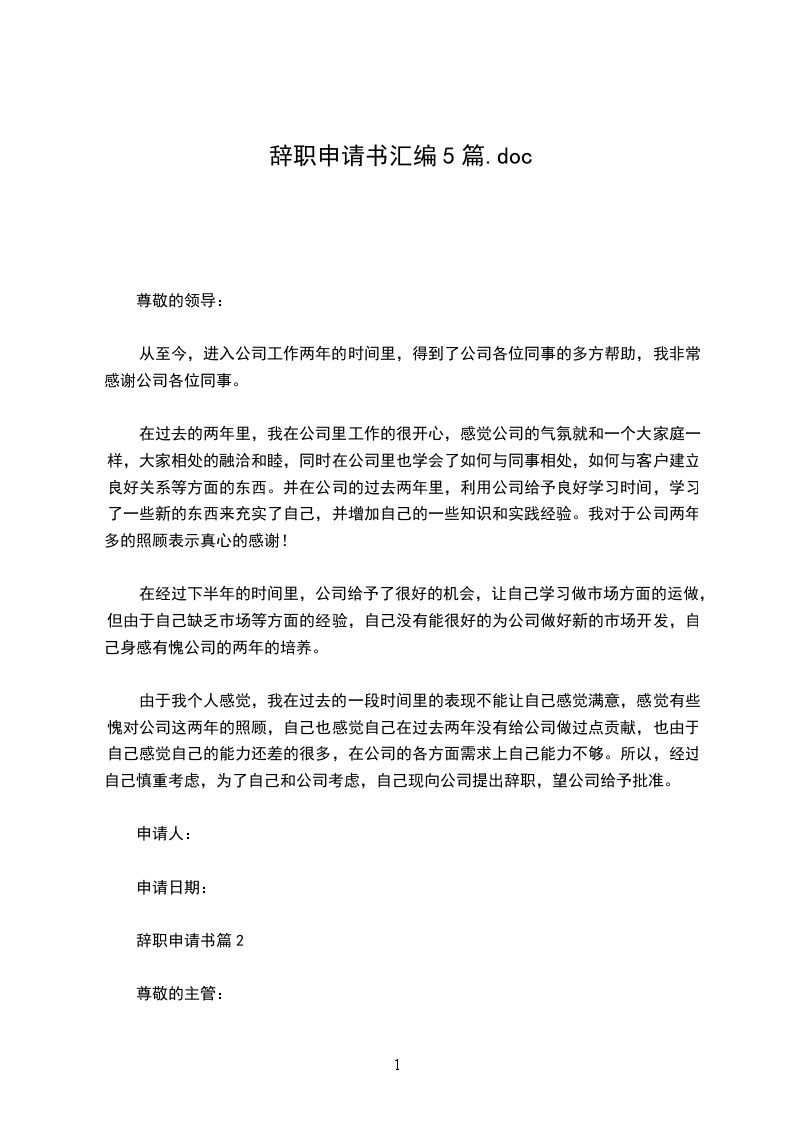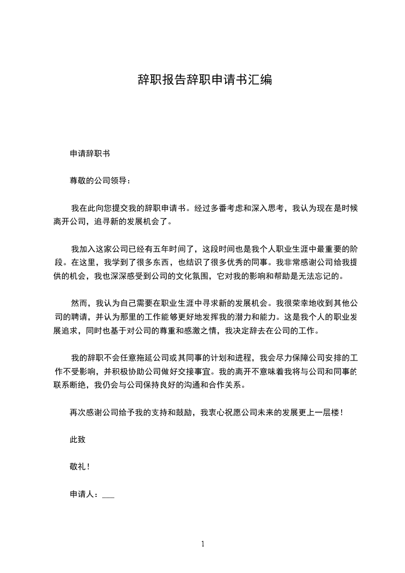 辞职申请书篇5