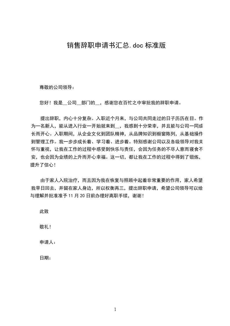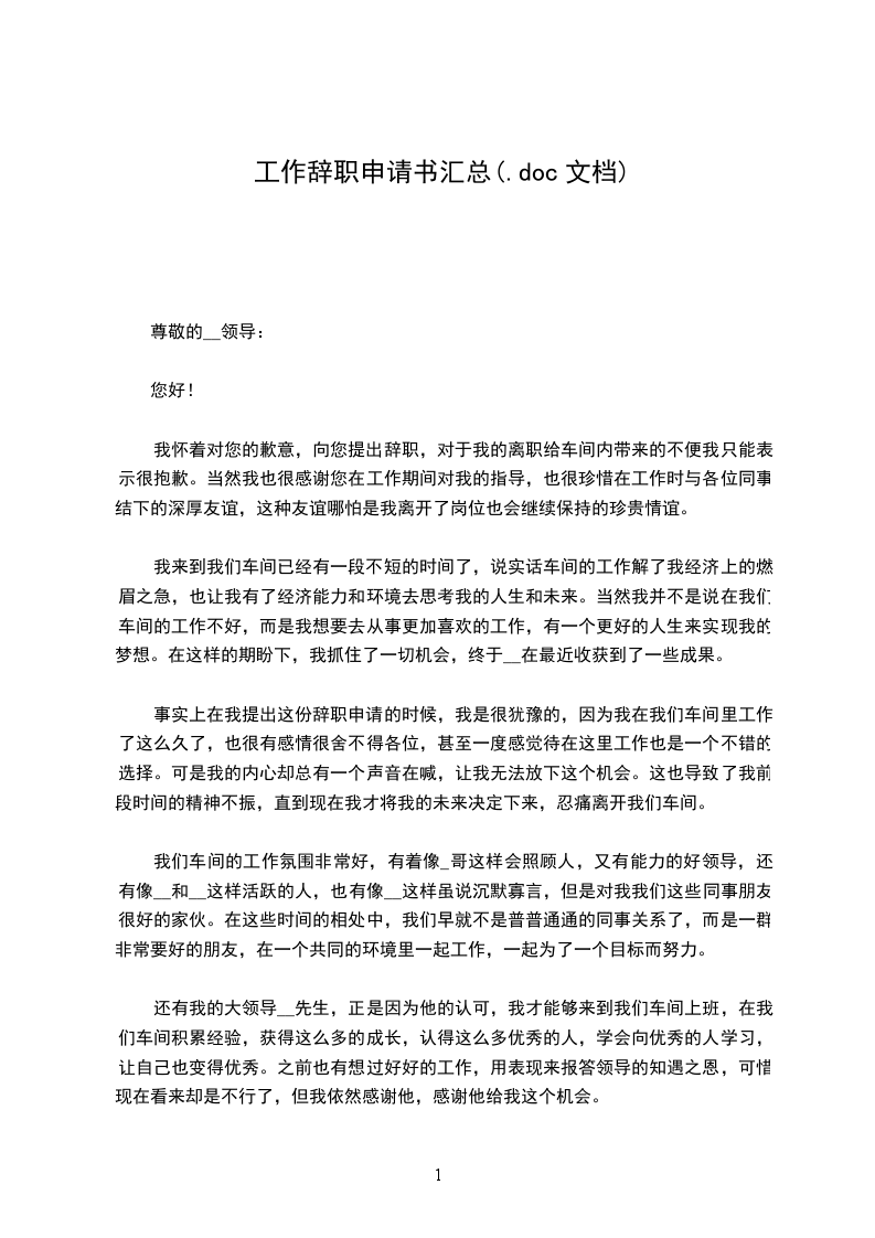 尊敬的___领导: