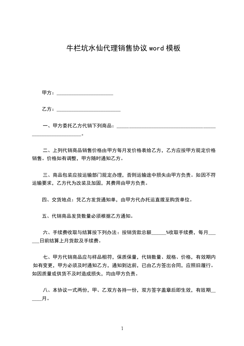 牛手参代理销售协议word模板