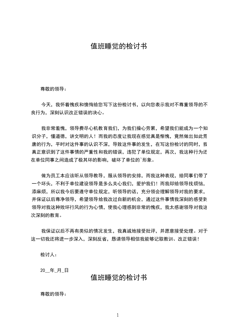 您好,我怀着深深愧疚的心情向您递交我这份检讨,严肃反省我在值夜班期间玩忽职守、偷懒睡觉的错误行为。此刻,我对自己的偷懒睡觉的行为以及可以因我玩忽职守可能带来的严重隐患,对您表示深深的抱歉。