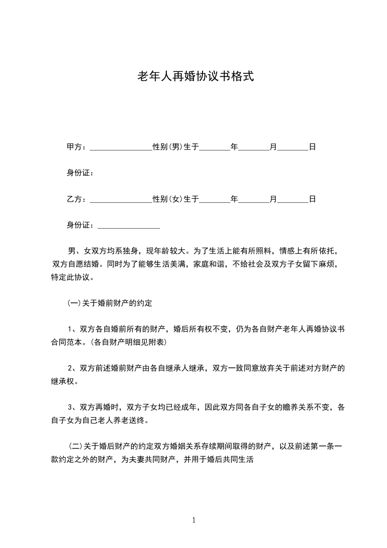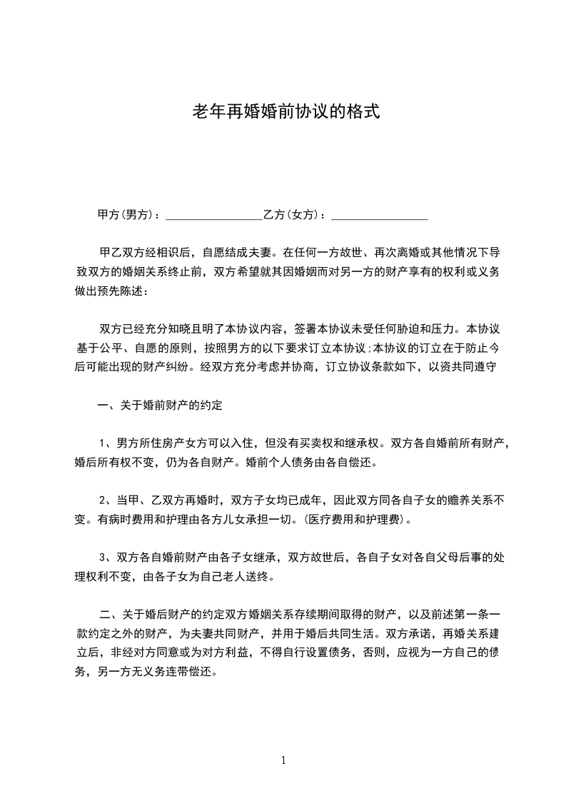 男、女双方均系独身,现年龄较大。为了生活上能有所照料,情感上有所依托,双方自愿结婚。同时为了能够生活美满,家庭和谐,双方及子女特定此协议。