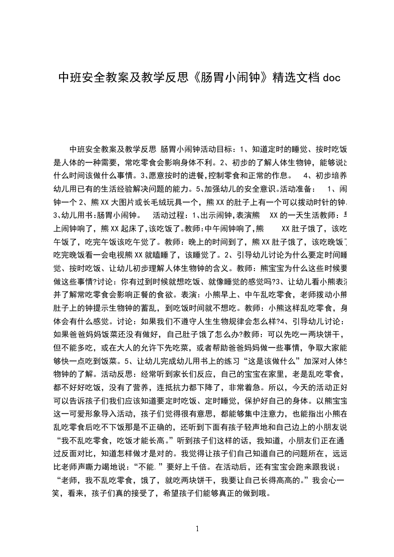 中班安全教案及教学反思 肠胃小闹钟活动目标: