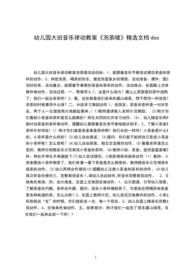 幼儿园大班音乐律动教案泡茶喽活动目标: