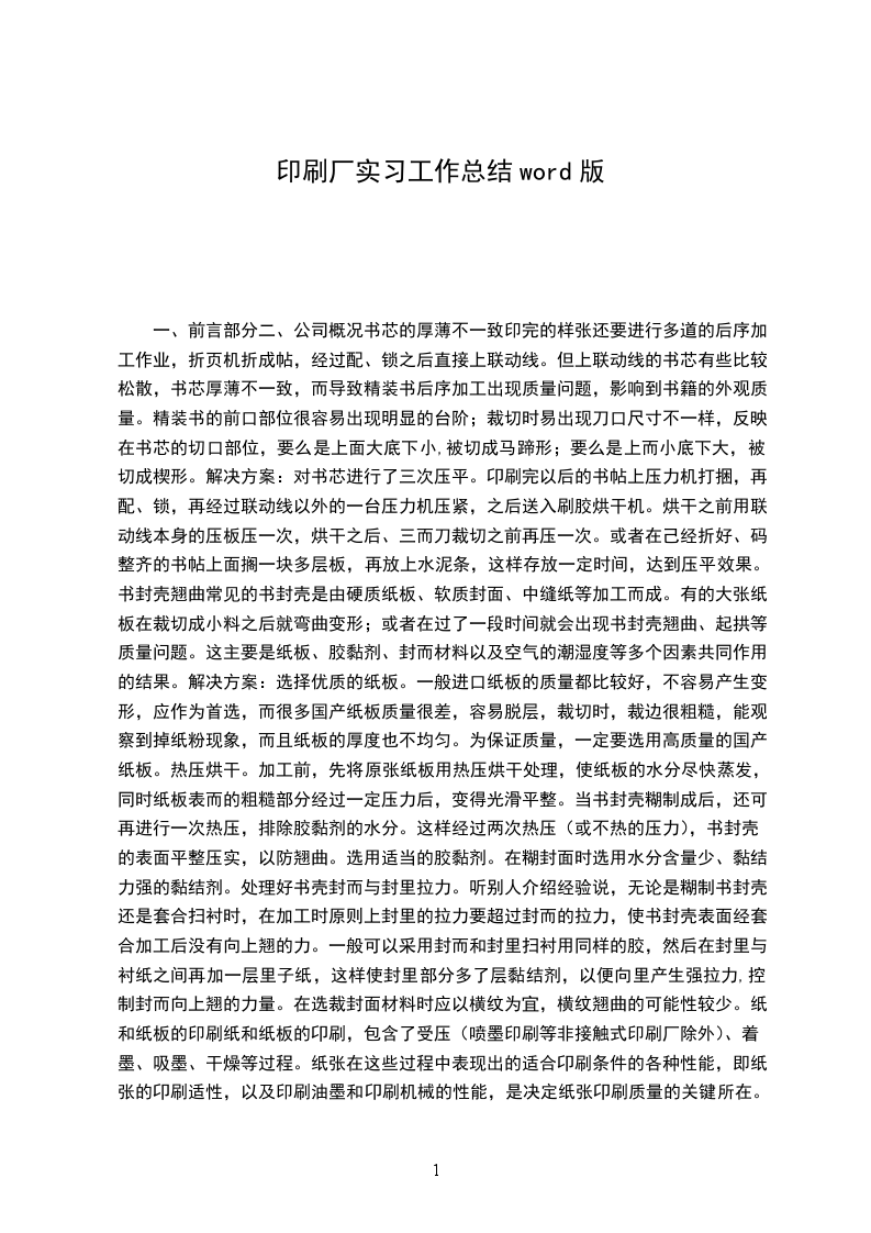 二、公司概况书芯的厚薄不一致印完的样张还要进行多道的后序加工作业,折页机折成帖,经过配、锁之后直接上联动线。但上联动线的书芯有些比较松散,书芯厚薄不一致,而导致精装书后序加工出现质量问题,影响到书籍的外观质量。精装书的前口部位很容易出现明显的台阶;裁切时易出现刀口尺寸不一样,反映在书芯的切口部位,要么是上面大底下小,被切成马蹄形;要么是上而小底下大,被切成楔形。解决方案:对书芯进行了三次压平。卬刷完以后的书帖上压力机打捆,再配、锁,再经过联动线以外的一台压力机压紧,之后送入刷胶烘干机。烘干之前用联动线本身的压板压一次,烘干之后、三而刀裁切之前再压一次。或者在己经折好、码整齐的书帖上面搁一块多层板,再放上水泥条,这样存放一定时间,达到压平效果。书封壳翘曲常见的书封壳是由硬质纸板、软质封面、中缝纸等加工而成。有的大张纸板在裁切成小料之后就弯曲变形;或者在过了一段时间就会出现书封壳翘曲、起拱等质量问题。这主要是纸板、胶黏剂、封而材料以及空气的潮湿度等多个因素共同作用的结果。解决方案:选择优质的纸板。一般进口纸板的质量都比较好,不容易产生变形,应作为首选,而很多国产纸板质量很差,容易脱层,裁切时,裁边很粗糙,能观察到掉纸粉现象,而且纸板的厚度也不均匀。为保证质量,一定要选用高质量的国产纸板。热压烘干。加工前,先将原张纸板用热压烘干处理,使纸板的水分尽快蒸发,同时纸板表而的粗糙部分经过一定压力后,变得光滑平整。当书封壳糊制成后,还可再进行一次热压,排除胶黏剂的水分。这样经过两次热压(或不热的压力),书封壳的表面平整压实,以防翘曲。选用适当的胶黏剂。在糊封面时选用水分含量少、黏结力强的黏结剂。处理好书壳封而与封里拉力。听别人介绍经验说,无论是糊制书封壳还是套合扫衬时,在加工时原则上封里的拉力要超过封而的拉力,使书封壳表面经套合加工后没有向上翘的力。一般可以采用封而和封里扫衬用同样的胶,然后在封里与衬纸之间再加一层里子纸,这样使封里部分多了层黏结剂,以便向里产生强拉力,控制封而向上翘的力量。在选裁封面材料时应以横纹为宜,横纹翘曲的可能性较少。纸和纸板的印刷纸和纸板的卬刷,包含了受压(喷墨印刷等非接触式印刷厂除外)、着墨、吸墨、干燥等过程。纸张在这些过程中表现出的适合卬刷条件的各种性能,即纸张的卬刷适性,以及印刷油墨和卬刷机械的性能,是决定纸张卬刷质量的关键所在。
