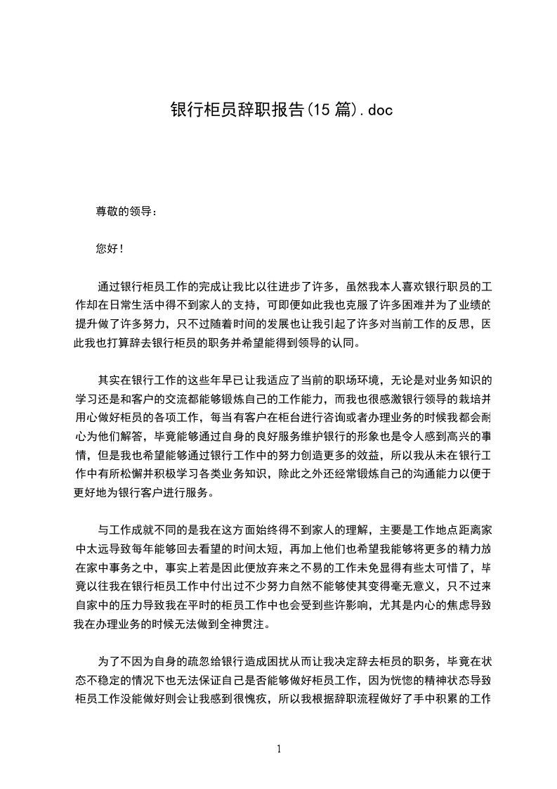 我带着复杂的心情写这封辞职报告。由于您对我的能力的信任,使我得以加入银行,并且在短短的两年间获得了许多的机遇和挑战。虽然我只是柜员,但是经过这两年的工作,还是让我学会了很多知识、积累了一定的经验。对此我深怀感激!