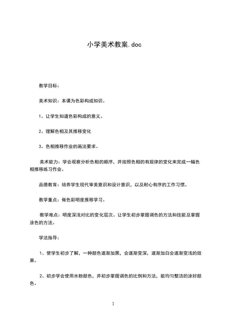 1、使学生初步了解,一种颜色逐渐加黑,会逐渐变深,逐渐加白会逐渐变浅的效果。