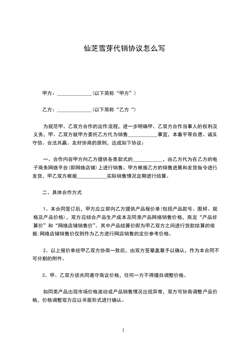仙芝雪芽代理销售协议word模板