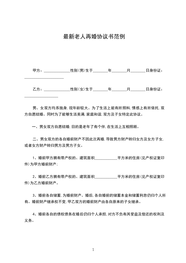 男、女双方均系独身,现年龄较大。为了生活上能有所照料,情感上有所依托,双方自愿结婚。同时为了能够生活美满,家庭和谐,双方及子女特定此协议。
