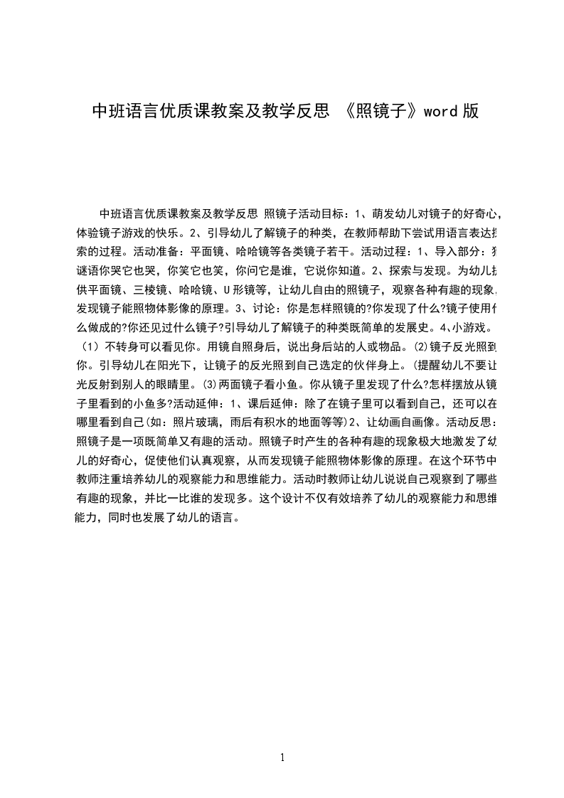 中班语言优质课教案及教学反思 照镜子活动目标: