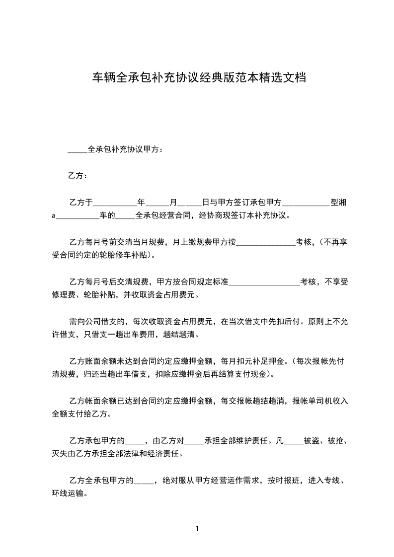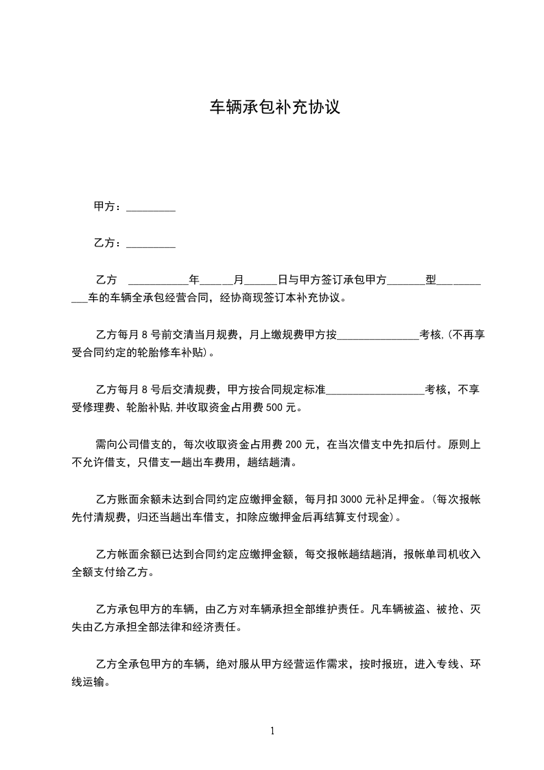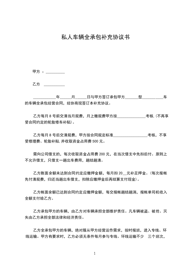 乙方于___________年______月______日与甲方签订承包甲方____________型湘a___________车的_____全承包经营合同,经协商现签订本补充协议。