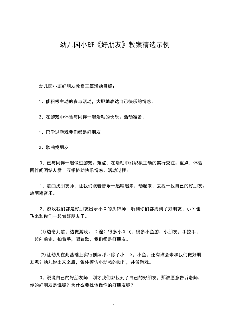 【篇三】幼儿园小班好朋友教案活动目标1.激发幼儿喜欢与他人交往的美好情感。
