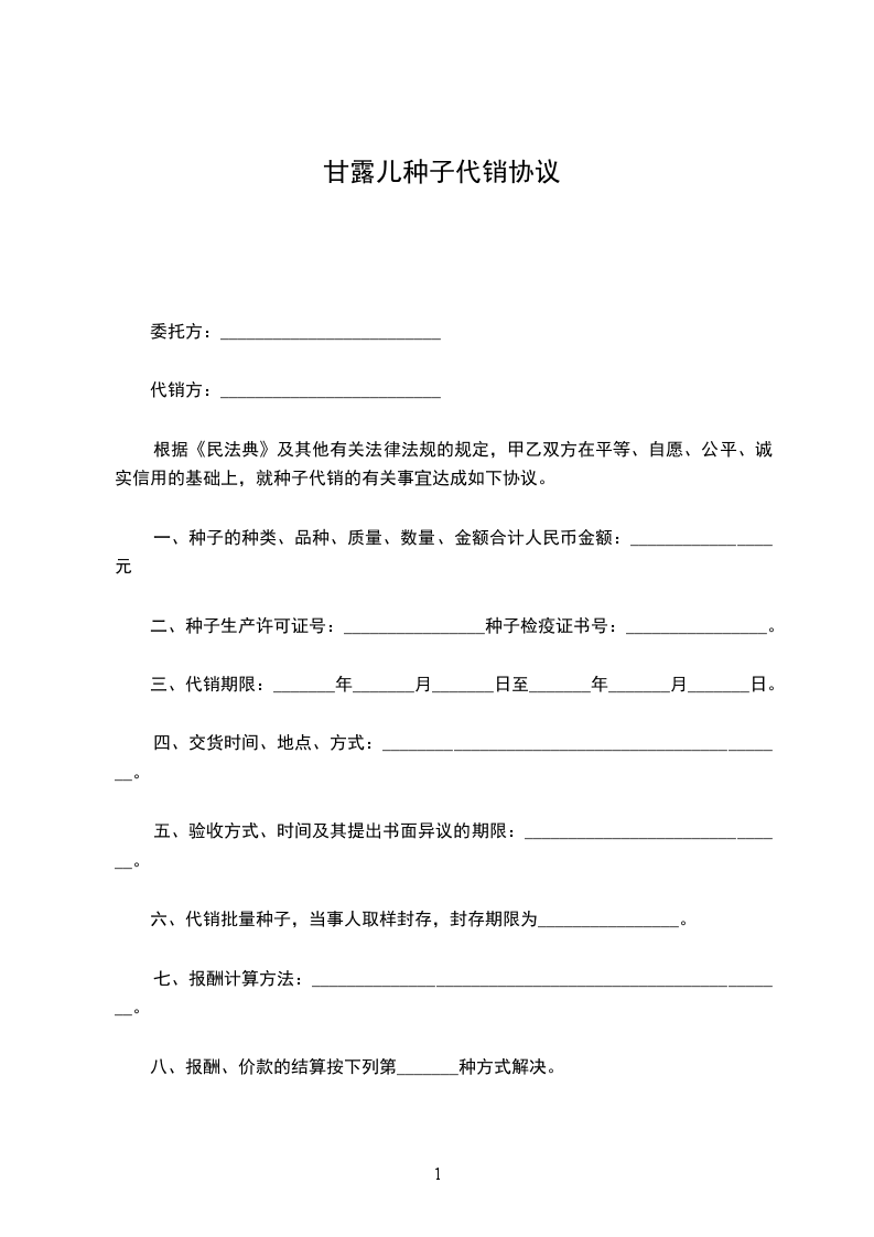 一、甲方授权乙方代理销售产品,乙方作为_________区域内的代理销售商,甲方将不再向该区域内的另外方供货,从而保证乙方销售权。