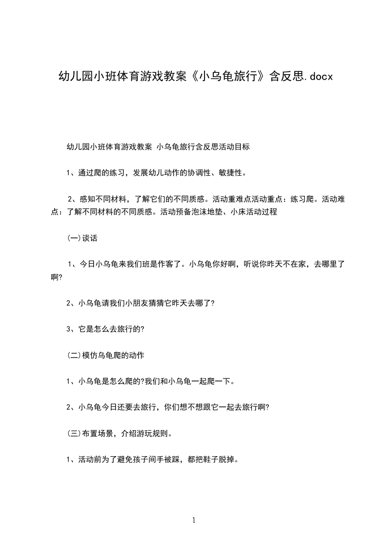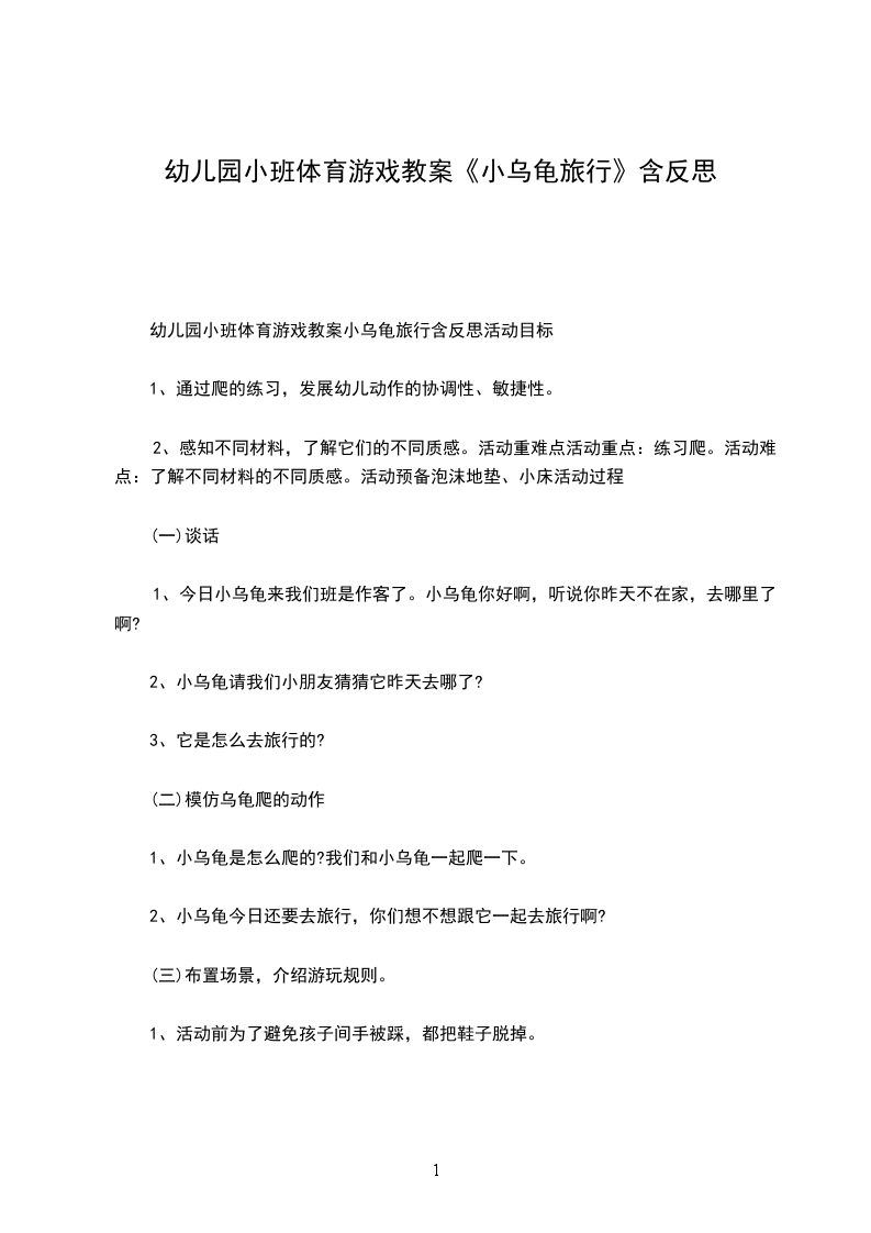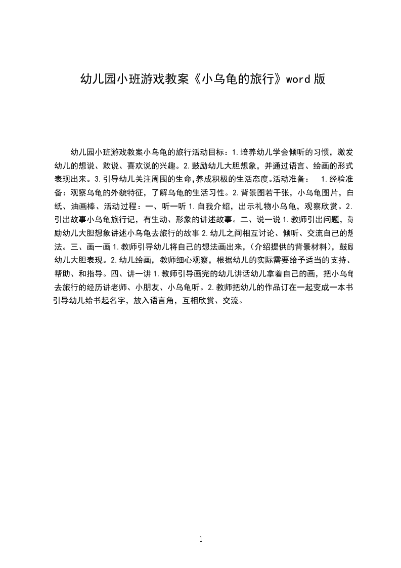 幼儿小班游戏活动教案小乌龟的旅行活动目标: