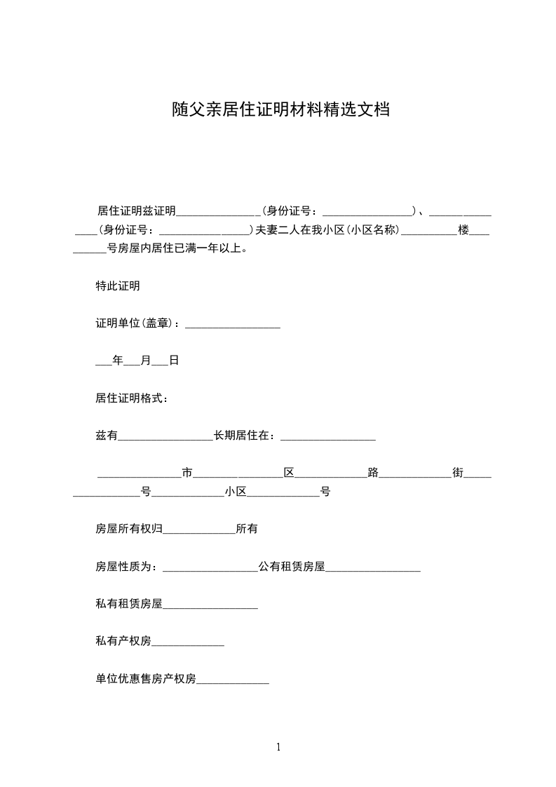 居住证明兹证明_______________(身份证号:________________)、_______________(身份证号:________________)夫妻二人在我小区(小区名称)__________楼__________号房屋内居住已满一年以上。