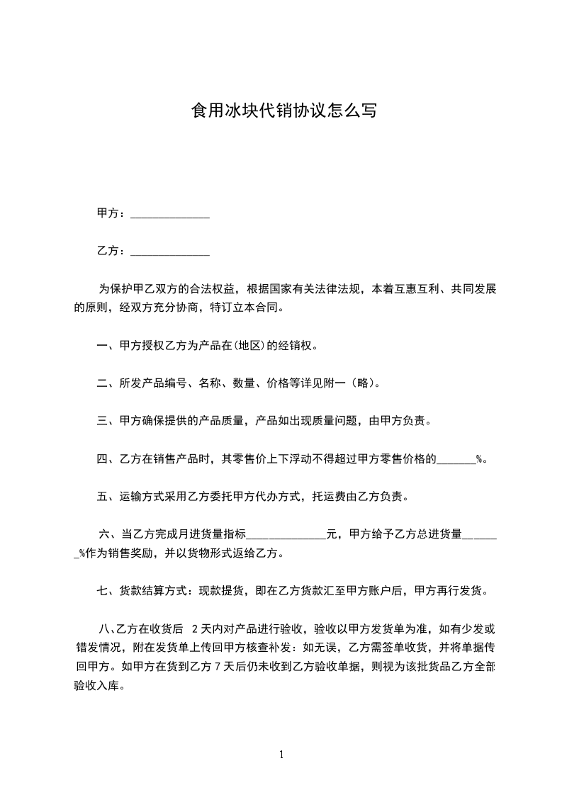 六、当乙方完成月进货量指标______________元,甲方给予乙方总进货量_______%作为销售奖励,并以货物形式返给乙方。