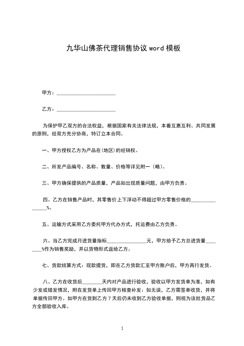 八、乙方在收货后________天内对产品进行验收,验收以甲方发货单为准,如有少发或错发情况,附在发货单上传回甲方核查补发:如无误,乙方需签单收货,并将单据传回甲方。如甲方在货到乙方7天后仍未收到乙方验收单据,则视为该批货品乙方全部验收入库。