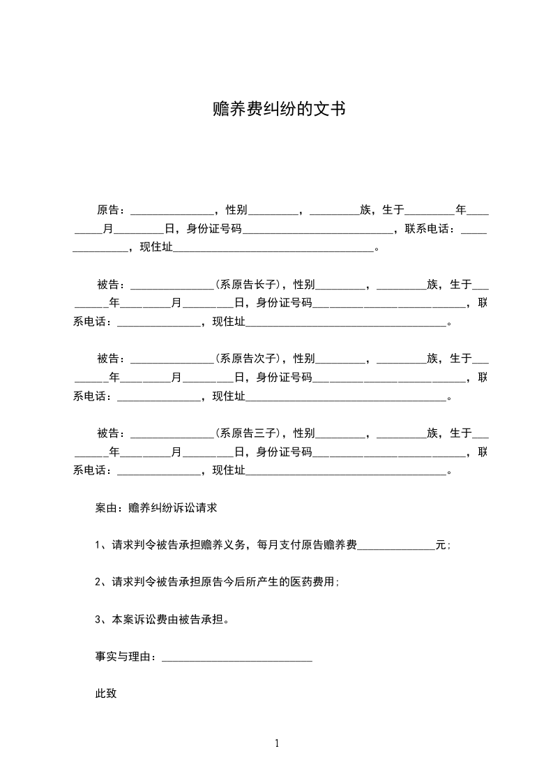 1、请求判令被告承担赡养义务,每月支付原告赡养费______________元;