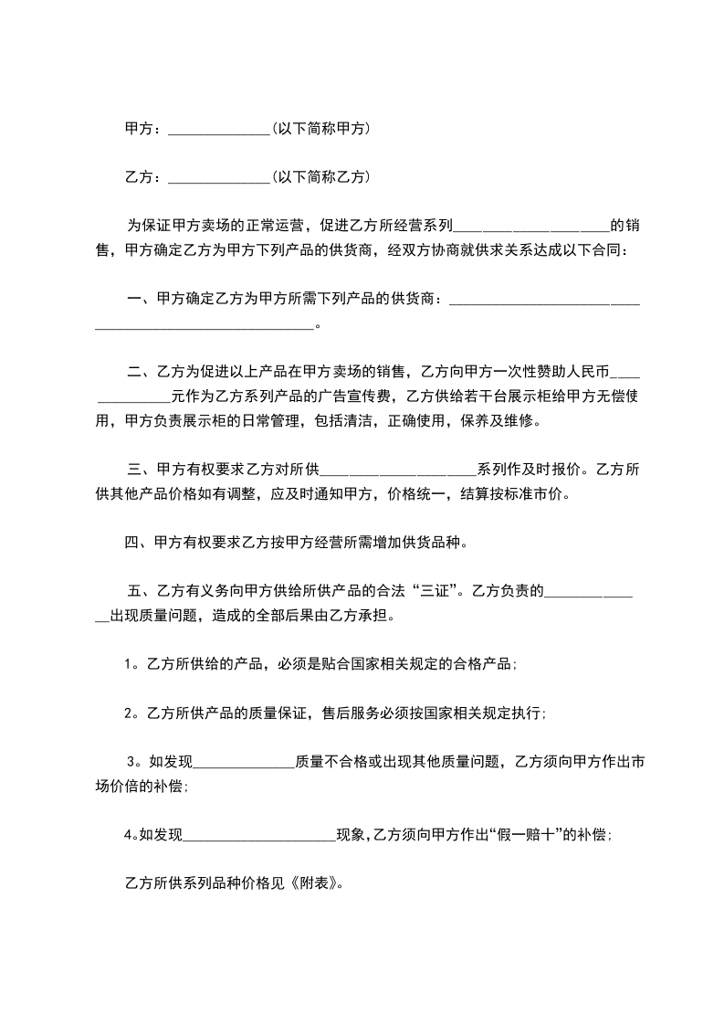 三、甲方按照双方约定的价格给乙方供应货物。
