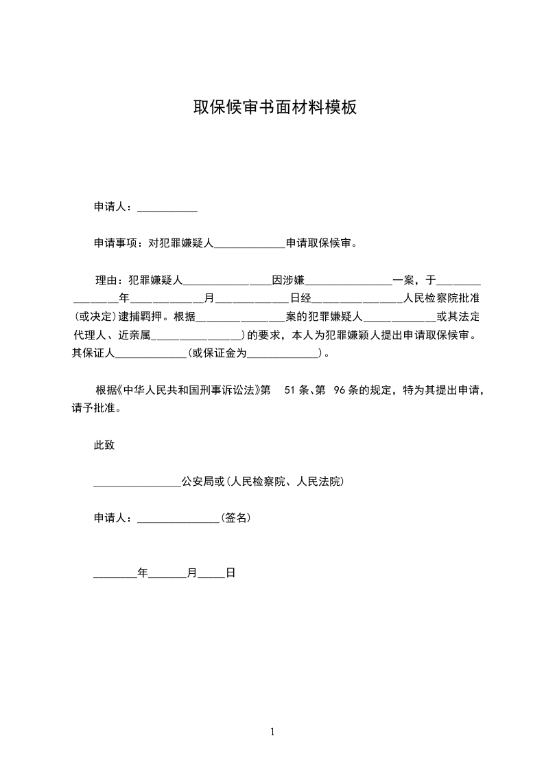 申请事项:对犯罪嫌疑人_____________申请取保候审。