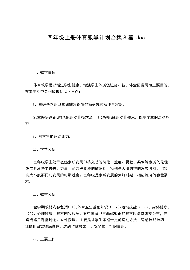 四年级上册体育教学计划篇8
