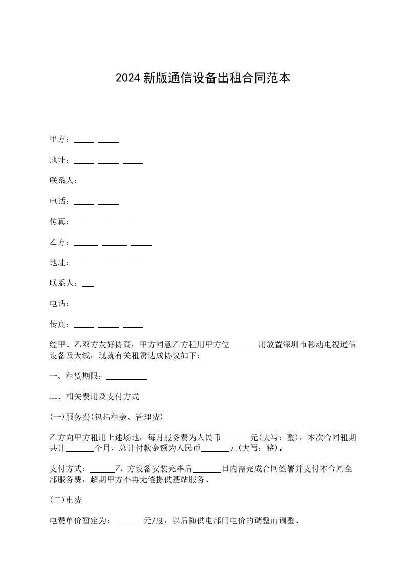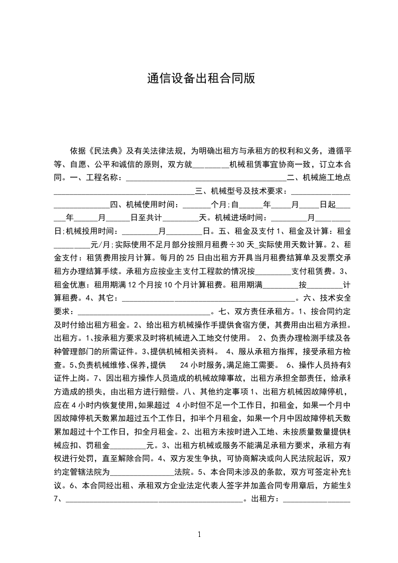 通信设备出租合同范本
