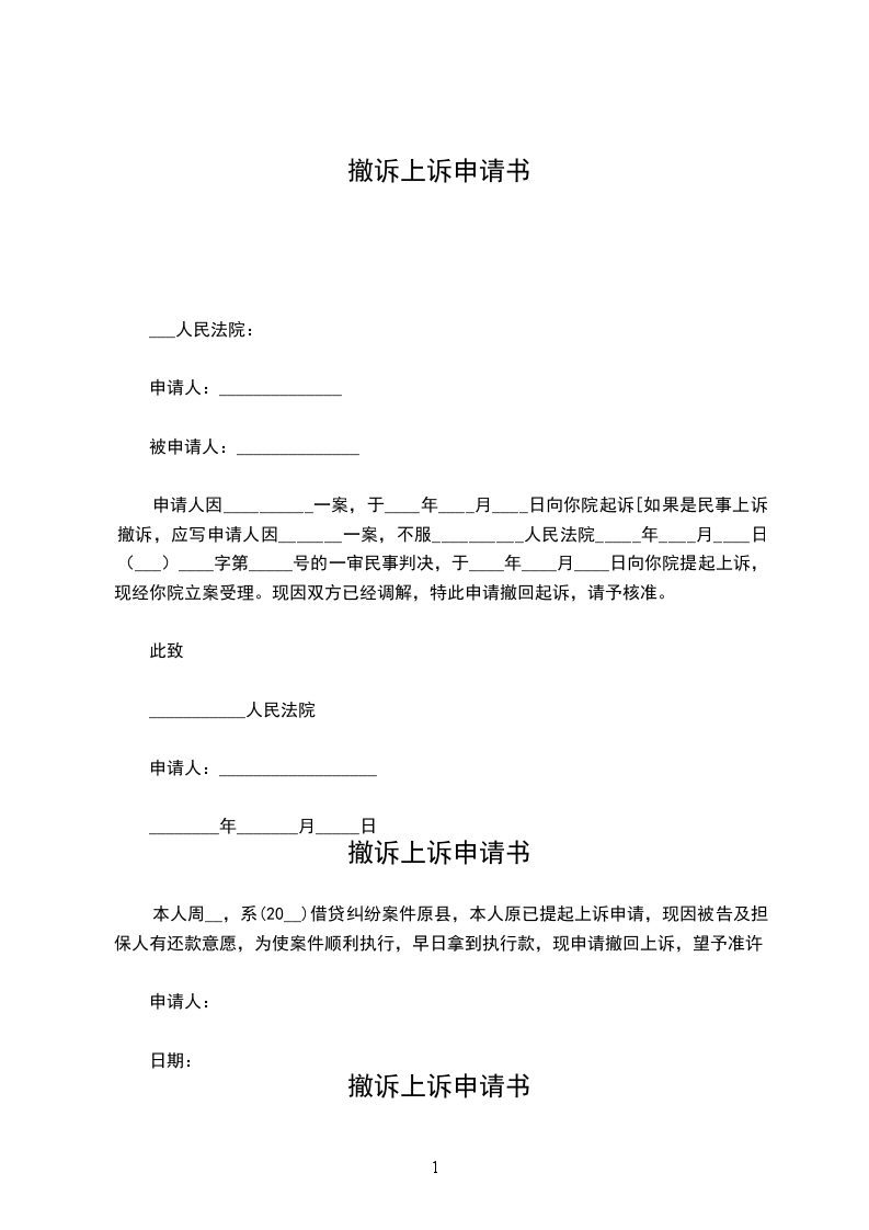 撤诉上诉申请书